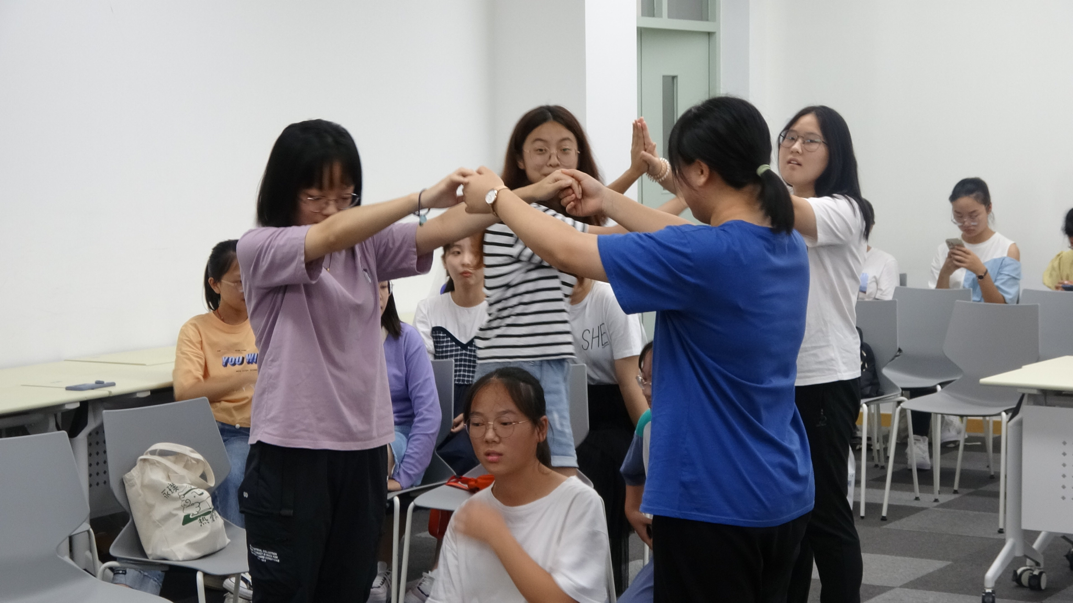 第一个活动需要每个人依次做一个专属于自己的动作,后一位则需在说出自己的名字和动作前,附加前一位同学的动作和名字。借助游戏的形式,同学们相互认识,不少同学的个性动作给大家留下了深刻的印象。