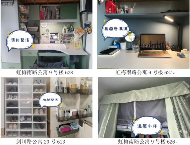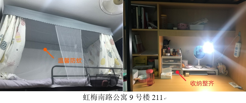 9月17日晚,yl6809永利官网2021级环境学系硕士研究生班委和党支部委员组织开展了本学年首次宿舍检查。本次检查中,各宿舍均未发现违禁电器,插排走线合理,在节能的同时最大程度上保持了用电安全;各宿舍地面洁净,室内空气清新,有几个宿舍通过自主改装铺设了墙纸和地板纸;大多数宿舍按垃圾分类要求设置多个独立垃圾袋,按照上海垃圾分类规定投放垃圾。本次检查评分最高的几间宿舍:女生剑川路公寓20号楼的613公寓,虹梅南路公寓9号楼的158、511、512宿舍;男生虹梅南路3号楼628宿舍。以下为优秀宿舍展示。
