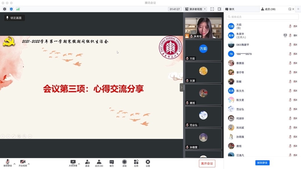 为学习贯彻党的十九届六中全会会议精神,进一步推动党史学习教育,2022年1月26日下午13:30,yl6809永利官网2021级环境学系研究生党支部举办了学习十九届六中全会精神心得交流分享会。本次会议以线上形式开展,包括时政要闻分享、重温十九届六中全会精神、心得交流分享以及我与支部共成长四个部分。会议由支部书记朱英华同志主持,辅导员吴丹老师和全体党员和入党积极分子线上参会。