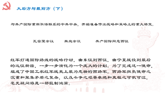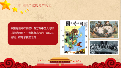 张涛同学代表第一小组分享了《历史:追寻之旅》中关于甲午之祭和中国共产党成立的内容。他先归纳中国半殖民地半封建社会的演进过程,在这个过程中,我们看到了当时受尽欺凌的中国人,也让我们时刻警醒。在弱肉强食的国际社会中,我们必须实现民族复兴,才能保证自己的权益。鸦片战争打开了中国的大门,而中国的出路在哪里? 一大批有志青年不断探索,面对伤痕累累的中国,当时的青年学者不畏强权,坚定信念,传播新的思想,为中国人民觉醒而奋斗。这种精神也鼓励着我们在当今社会,主动承担社会责任,为中华民族的伟大复兴做贡献。随着马克思主义的传入,中国共产党成立,从此中国革命的面貌焕然一新。