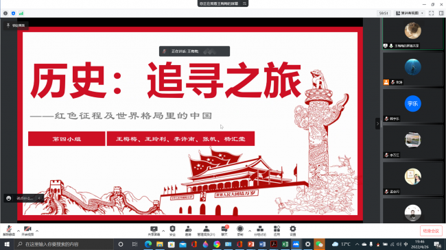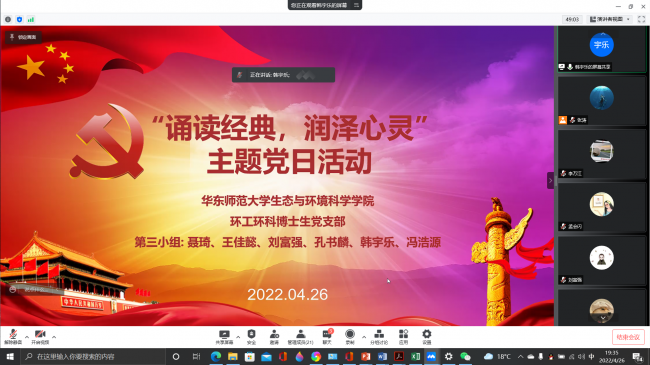 最美人间四月天,不负读书好时光。这个春天因为一场突如其来的疫情,不少人被迫“宅”在寝室里。但是,按下暂停键的这些日子里,我们不妨打开放在收藏夹里的那些经典书籍,静下心里读书,从书中汲取力量,静下心思考,从中获取更多的感悟。重提阅读经典,看似是老生常谈,但在建设学习型社会,呼唤终身学习的今天,这仍有极强的现实意义。经典作品可以为学习者提供沟通与交流的可能,成为塑造社会共识的基础。在中华民族伟大复兴的时代,我们必须对这些经典有更多更深的了解,并且站在当代的角度去解读。而经典作品的包容性强,用不同的眼光切入,经典作品就可能呈现不同的景象。另外,经典作品的魅力可以超越时空的阻隔,与当下对话,实现对自我价值的探索和对人生意义的追问。yl6809永利官网环工环科博士生党支部于2022年4月26日开展线上读书会分享,读书会分享的主题为“诵读经典,润泽心灵”,分享的经典书籍是《历史:追寻之旅》。