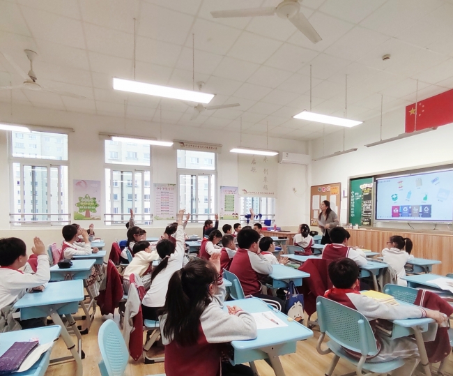 课堂最后,小尹老师和小陶老师提出了“可降解塑料”的概念。虽然可降解塑料对环境无害,但是其价格高、难保存、难回收的特点也限制了它的大规模应用。“地球是我家,保护靠大家。”在老师们的呼吁中,本次环教课圆满结束。
