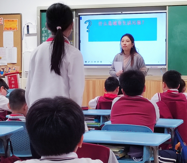 课程开始,小李老师、小戴老师提出问题:“什么是城市生活垃圾?”这引发了同学们的思考,老师们由此介绍了城市生活垃圾的概念并举了一些例子。随后,他们又通过真实的照片展示了城市生活垃圾的特点与危害。看到一张张触目惊心的图片,小朋友们不禁感叹:“处理垃圾实在是太重要了!”