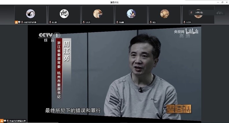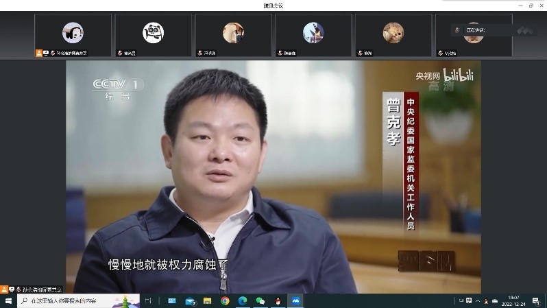 在活动的第三部分,支部书记孙金浩进行了发言,他说道,学习反腐的主题,更希望我们学生党员能够从中认识到自身可以学到什么,腐败可能离我们还比较遥远,但是在这里面我们可以认识到党的保鲜密码是党一直在自我革新,党自身也犯过错误,比如66年文革,腐败问题等,但是党能通过自我革新改正这些问题,疫情期间也有很多不好的声音,我们作为党员应该要坚定不移的相信党可以带领我们战胜一切的困难,主动去带领群众去相信党拥护党,不忘入党的初心。