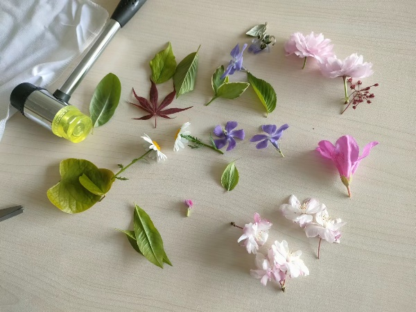 活动开始前,参与的同学将自己在师大校园内收集的植物整理放置在桌上。
