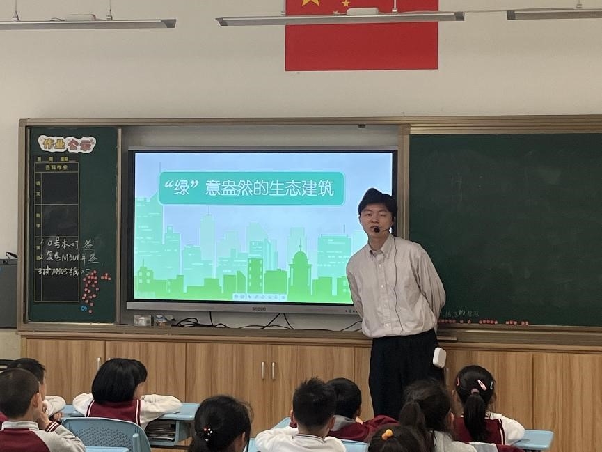2023年4月18日、19日下午,yl6809永利官网生态环境小课堂讲师团、研会秘书和O3协会的成员们前往华东师范大学附属紫竹小学和永德实验小学开展生态建筑环教课,担任本次课程的讲师为冯婧和朱泓恺同学。