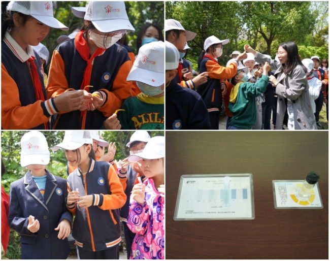 小王老师强调治理河流污染的重要性,告诉小朋友们治理河流污染可以改善生态环境,减少周边农田灌溉和饮用水的污染,增加我国的生态资源储备。为了让孩子们亲身体验,小王老师带着小朋友们到户外采集水样体验水质检测。通过使用pH试纸、氨氮检测试剂、总磷检测试剂,小朋友们兴致勃勃地检测氨氮、总磷和pH值。看着水样变色,pH试纸慢慢变绿,孩子们惊叹不已。
