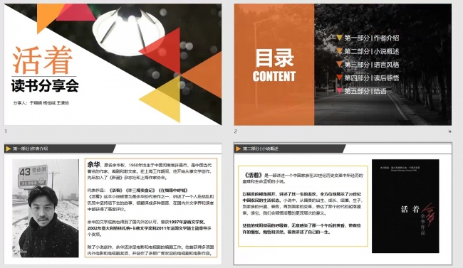 首先,第一小组分享了路遥的《人生》。这部小说以改革时期陕北高原的城乡生活为时空背景,描写了高中毕业生高加林回到土地又离开土地,再回到土地这样人生的变化过程,构成了其故事构架。从农民的角度向我们呈现了不同人不同的人生,每个人物都有那么鲜明的特点。结局许多人会感到既满意又遗憾,人生就是这样,没有谁的人生是完美的,面对人生的每一个岔路口,无论做什么选择,到头来一想,都会有不如意。明白这个道理,遗憾的程度可能会少点儿。在书的最前面柳青那句“人生的道路虽然漫长,但紧要处常常只有几步,特别是当人年轻的时候”,所以我们能做的很少,我们就做好每一步,努力不让自己留遗憾。