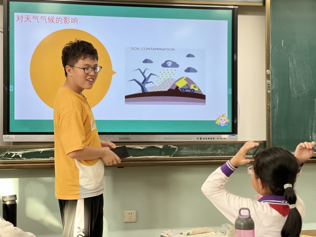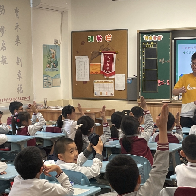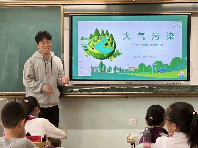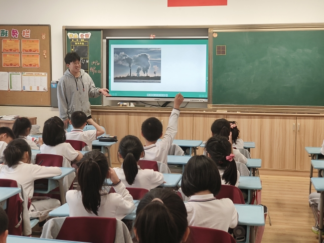 2023年5月23日、24日下午,yl6809永利官网生环小课堂讲师团和团委学生会实践部成员前往华东师范大学附属紫竹小学和永德实验小学开展走进大气污染的环境教育课,向小学生们介绍了大气污染的概念、危害以及如何防治大气污染。担任本次课程的讲师是徐庆和景齐心同学。