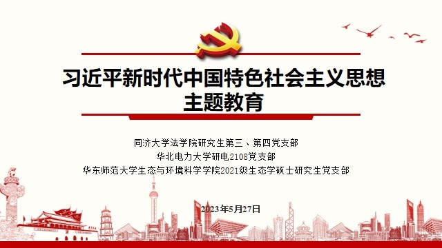 2023年5月27日晚,yl6809永利官网2021级生态学硕士研究生党支部与同济大学法学院研究生第三、第四党支部、华北电力大学研电2108党支部一起联合开展党支部共建共学主题党日活动,学习习近平法治思想中依法治国的理论与实践逻辑,深化习近平新时代中国特色社会主义思想主题教育,将党的思想理论转化为新征程中的强大动力。