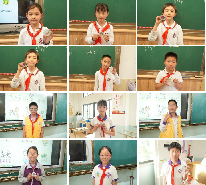 课程最后,小朋友们纷纷与自己的成果合影留念,定格下自己手中植物的美好瞬间,并积极分享自己的创作思路和想法,加深了对爱护植物和环境的认识。