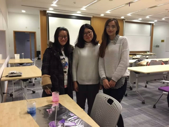 O3协会干事和上纽外籍同学一起制作学校简称的塑料