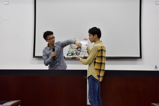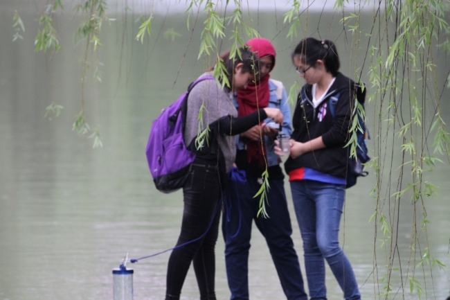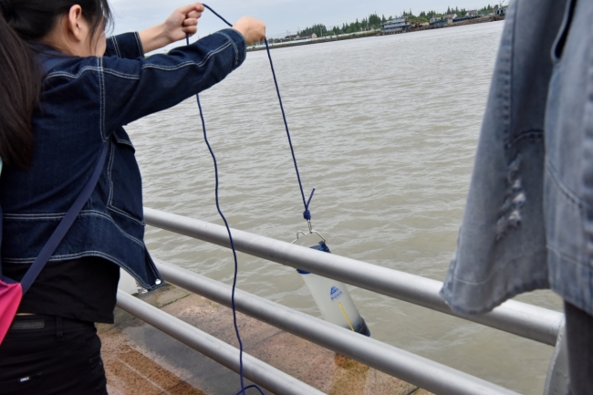 下午12:45,参加活动的师生在资环楼148集合,此次参加活动的同学被分成八个小组,每两个小组一个采水器,一套上海三信SX736型便携式pH/电导率/溶解氧仪。首先由助教为大家分发标有采样点位置的路线图,张勇、路葵老师为大家详细讲解了行程安排和一些注意事项。另外,此次活动还邀请到了上海奕枫环境仪器公司的张海迎工程师进行全程指导。