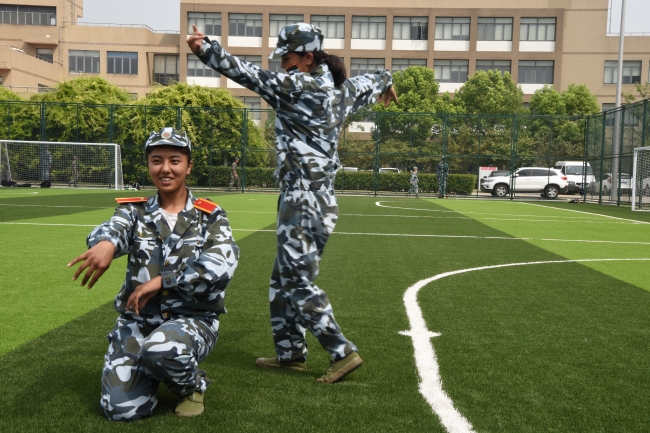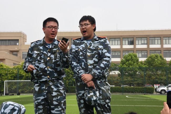 训练场内,同学们昂首阔步、挥汗如雨,军训场外,还有一些师生在背后默默付出。同学们累了,老师们送上清凉消暑的绿豆汤、哈密瓜和冰棍;同学身体不舒服,有老师们无微不至的关心和照顾。虽然有一些同学由于身体原因没有上场训练,但是他们仍尽其所能为场上的同学提供帮助、为他们服务。在军训这短短的几天内, 艰苦的训练增强了我们的协作精神,拉近了我们的心灵,让本就深厚的同窗之谊得以升华,成为无可替代的战友之情。