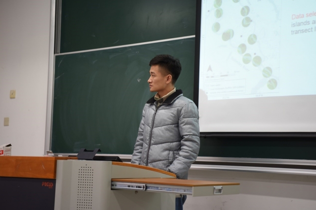 茶歇过后, 张希金、王妙莹、梁启明、李桢四位同学带来了他们最新的研究进展快报。题目分别为:“An assessment of carbon and growth limitation in the formation of the elevational upper limit of evergreen broad-leaved forest”、“Genotype-Specific Enrichment of 1-Aminocyclopropane- 1-Carboxylic Acid Deaminase-Positive Bacteria in Winter Wheat Rhizospheres”、“Rethinking patch size and isolation effects: the habitat amount hypothesis”、“High carbon dioxide uptake by subtropical forest ecosysterms in the East Asia monsoon region”。