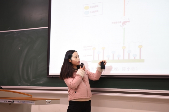 在第二个报告中,蔡哲挺同学就“拟寄生者对榕小蜂形态特征的影响”问题做了精彩的汇报,引起老师和同学们的热烈讨论。