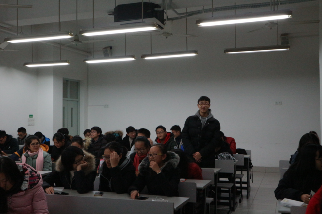 之后,由团支书金宵羽同学带头,全体同学对于本学期的学习与工作情况进行了自我反思,评价与总结,并对未来一年提出新的改进目标。
