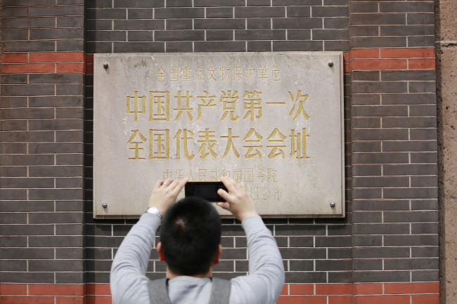 合影结束后,大家排队进入中共一大会址进行参观。中共一大会址展示了中国近代史历程,陈列了珍贵的资料,真实地再现了中国共产党诞生这一大事。