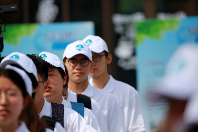 在全国城市节约用水宣传周的开幕式中,yl6809永利官网本科生陈姝融、蔡璐作为华东师范大学代表受到领导接见并被授旗。获得上海市副市长时光辉和与陈姝融亲切交谈握手,授予上海市高校志愿者代表队节水宣传旗帜。上海市水务局局长白廷辉与蔡璐亲切交谈握手,并授予上海青未来志愿者代表队旗帜。两位领导鼓励大家投身节水环保教育,积极参加节水活动。
