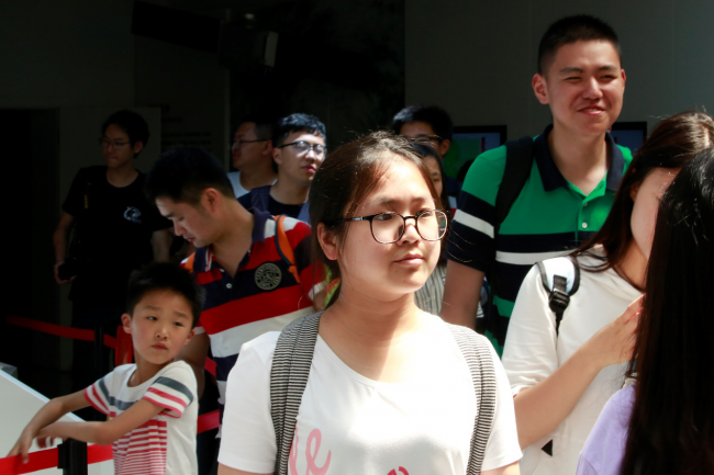 同学们观看东亚——澳大利亚迁徙水禽飞行路径