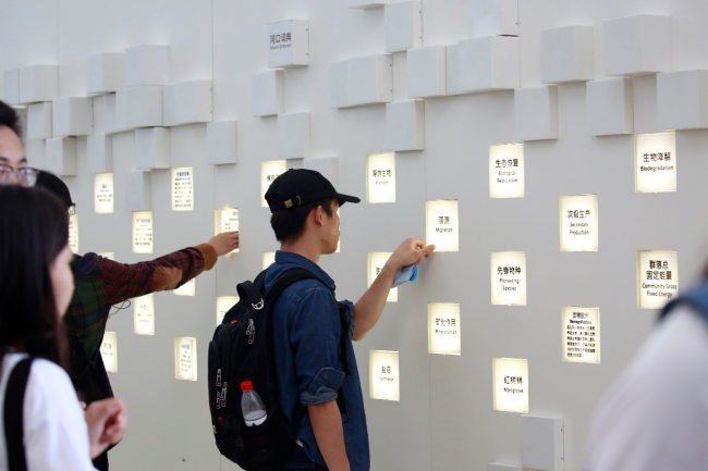 第二展厅资源与环境厅主要介绍河口地区的自然环境风貌。这里有丰富土地资源、水资源和动植物资源,也有诸如风暴潮等自然灾害对河口地区的潜在威胁,以及应对灾害的防治措施。