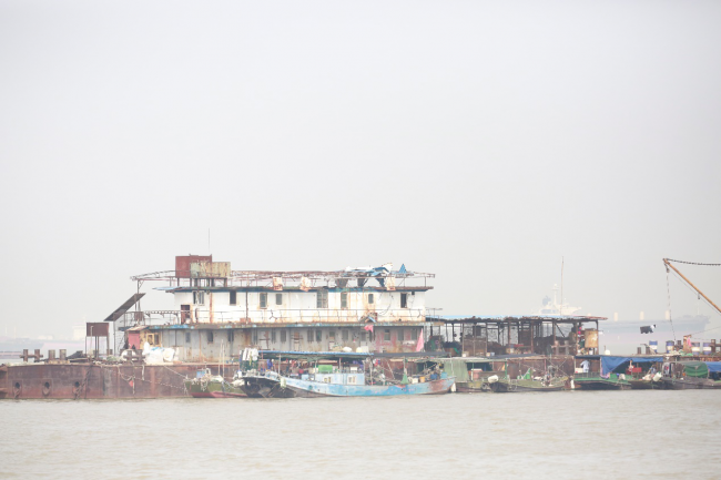 参观结束后,大家沿着长江口湿地栈道走回湿地公园大门,眺望长兴岛,感受长江河口的原生态自然风貌。