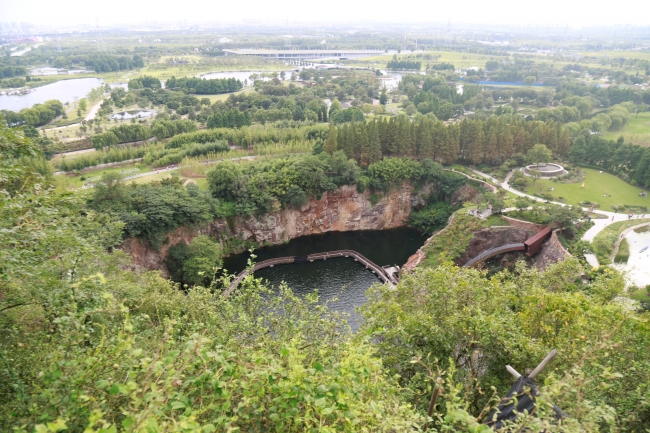 下午三点自由参观结束后,同学们共同前往辰山。辰山属于佘山山系,海拔约70米 。明代董其昌记载,辰山“在诸山之东南,次于辰位”,也以此得名。20世纪由于采石,山的南坡已被削去。在植物园的设计中,这一部分被改造成为矿坑花园。矿坑花园的原址为一处采石场遗址,设计者通过生态修复,并对深潭、坑体、迹地及山崖进行适当的改造,使其成为一座风景秀美的花园。参观过程中,柳林老师从地质环境灾害的角度出发,为同学们详细讲解了矿坑可能发生的地质环境灾害及可采取的防范措施和手段。