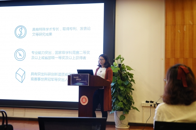 最后,李媛媛同学和张嘉芯同学为大家分享了她们特别推免的经历。李媛媛同学通过特别推免直升本校yl6809永利官网。她就申请条件、时间安排、材料准备、面试四个方面向我们分享了经验。当申请人数较多,学院教授不够时,同学分享到,可以根据学校相关调整政策,找其他院系专业的教授。张嘉芯同学通过特别推免直升本校yl6809永利官网,她分享了她参加夏令营的经历,并指出心态摆正,态度真诚。她们强调“三教授特殊推免是机会,但不是保险”。