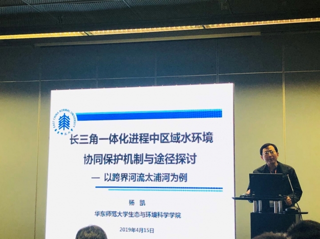 我院杨凯教授依托水专项(2017ZX07207003)《金泽水库水质调控与稳定关键技术研究与应用》的相关工作开展了以“长三角一体化进程中区域水环境协同保护机制与途径探讨——以跨界河流太浦河为例”为题的专题报告。