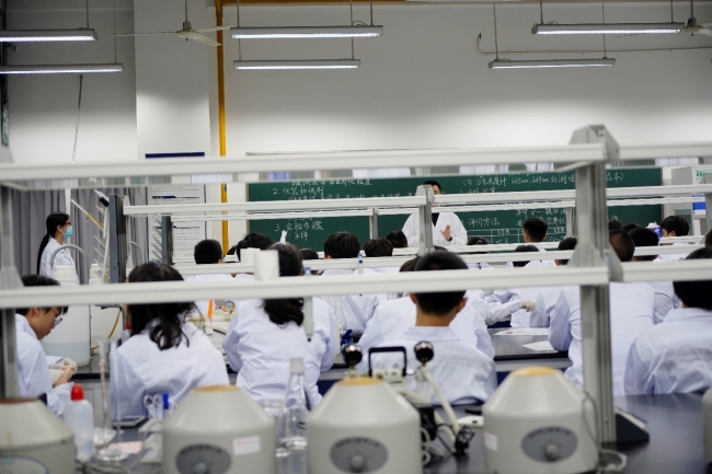 采集水样并现场测定理化指标后,营员们在谭珊珊老师、崔玉雪老师的带领下将各自采集的水样拿到实验C楼114室进行水质指标叶绿素a的提取实验。实验开始前,老师与助教为大家讲解了实验仪器的使用方法、具体的实验步骤及实验室注意事项。