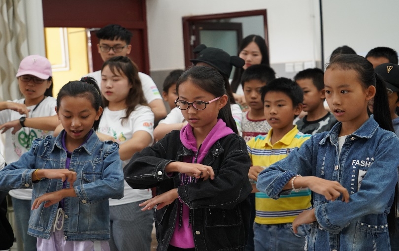 大家集体表演手语操《红山果》,一朵花、一棵树、一座房子、一条路,支教团成员将永远铭记这些简单却不失美好的动作。小朋友们在雅雯老师、晓蕾老师和通通老师带领下表演一萌一酷两支舞蹈,动作整齐划一,充分展现了他们短时间的领悟能力,同时也向所有出席者见证了他们的汗水和努力。