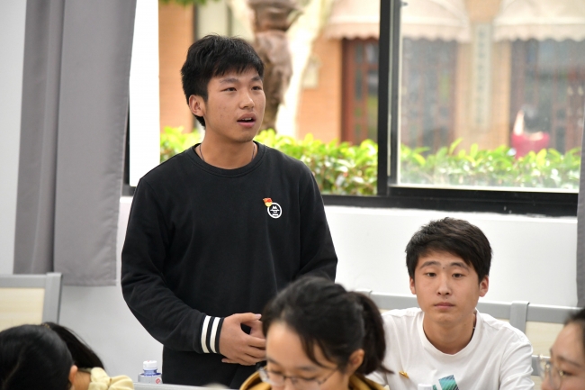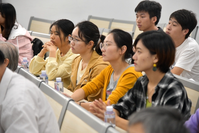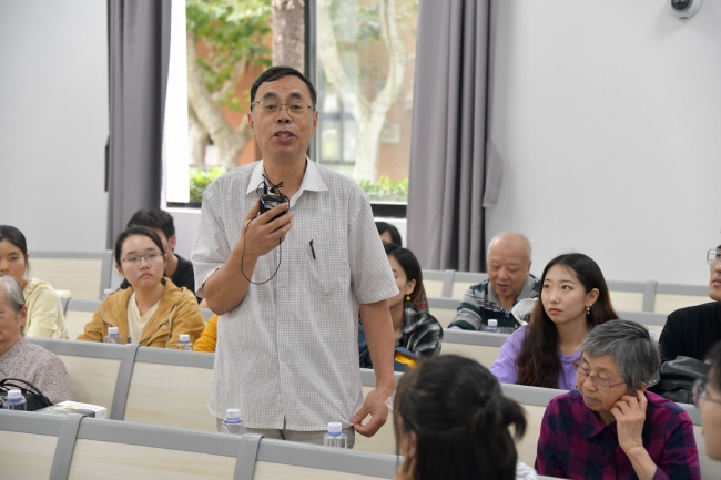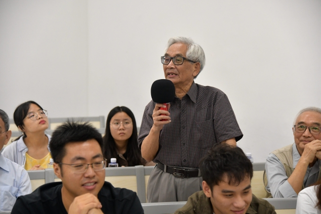 校史馆集中参观学习结束后,师生党员和学院全体退休教师齐聚群贤堂101室,开展老中青三代共话初心使命座谈会。院长陈小勇老师向退休教师们汇报了学院近一年的发展情况,从双一流学科建设情况、人才引进到科研立项、研究基地拓展等方面进行了全面介绍。退休教师们虽然离开了工作岗位,但一直非常关心学院的发展,积极为学院发展建言献策,对于学院取得的发展成果感到十分欣慰和激动,响起了热烈的掌声。