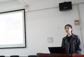 短暂的茶歇后,来自徐娟老师课题组的孟会闪同学以《污泥基活性炭粒子电极催化剂的制备与性能优化》为题跟大家分享了自己在颗粒污泥基活性炭方面的研究。提问环节中,一位同学从电化学分析的角度对她的研究方法进行了提问,并提出了改进意见。