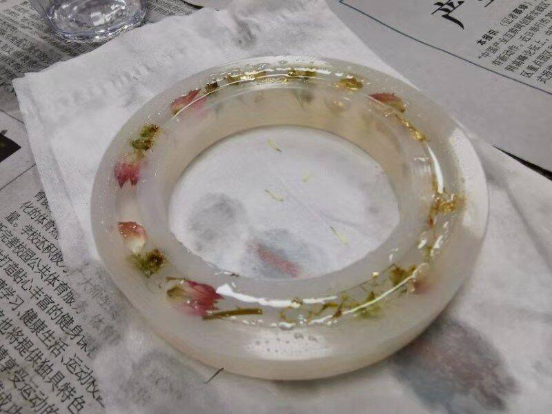 第四节课手工课程内容为滴胶制作。这节课不仅是让老人和孩子们用调制出的滴胶制作项链、手镯及各种小饰品,生环团队还提供了加拿大一枝黄花、一年蓬等植物的干花,而这些植物都是第三节课中提到过的入侵物种。生环团队通过这种手工制作滴胶封存的方式,进一步加深老人和孩子们脑海中入侵植物的概念和印象,贯通第三节课中讲授的科学放生知识。