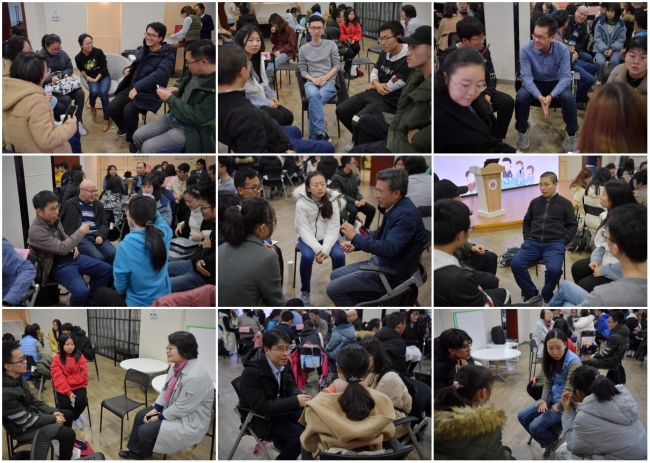 接下来就是师生交流的环节,每位导师和所指导的学生围坐在一起,面对面的进行交流,导师们详细了解同学们在学习、工作等方面的情况和问题,耐心解答同学们提出的各种疑问和困惑。