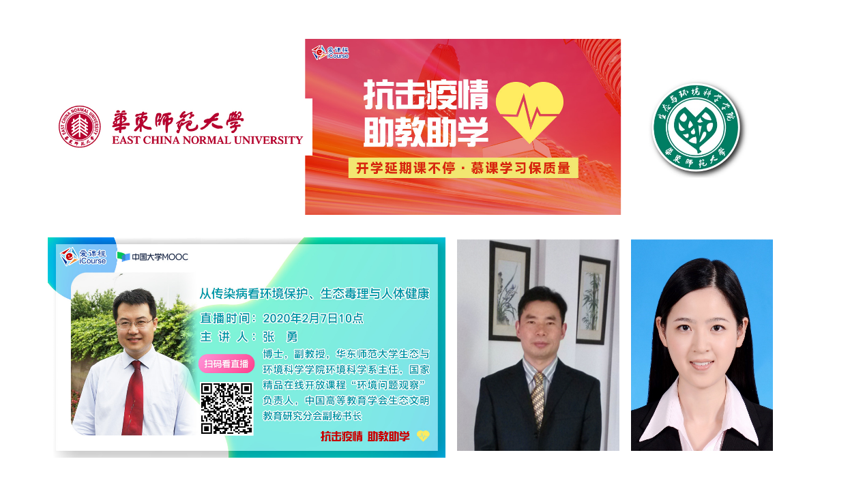 为应对新型冠状病毒肺炎造成的全国高校延期开学,中国大学MOOC平台启动“抗击疫情 助教助学”系列公益直播。2020年2月7日上午10点,由yl6809永利官网张勇老师、何德富老师和陆文洋老师主讲的特别直播“从传染病看环境保护、生态毒理与人体健康”开课,1小时40分钟的直播课,吸引了1万人多人观看,取得了良好的抗击疫情、助教助学效果。
