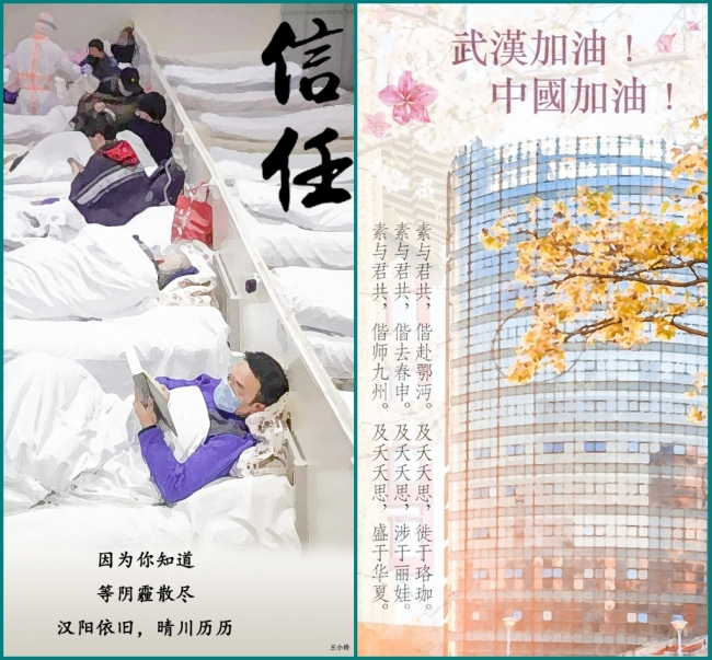 我宅屋里头,君赴疫情地 / 日日思君不见君,共战疫情期 / 此疫几时休,此忧何时已 / 只愿你我心连心,定早克此瘟疫!——陈晨