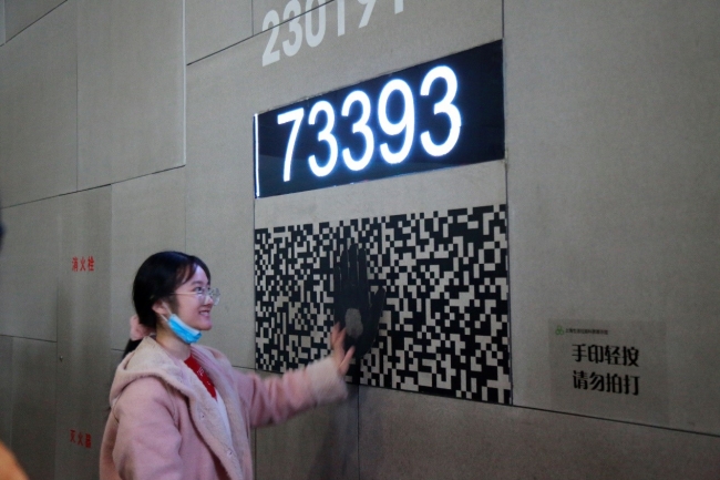 展厅的最后有一块宣誓墙,按上手印并宣誓“我自愿进行垃圾分类,保护环境”,就可以为显示屏上的数字增加一个,为保护环境多出一份力。同学们都积极上前按上手印宣誓。
