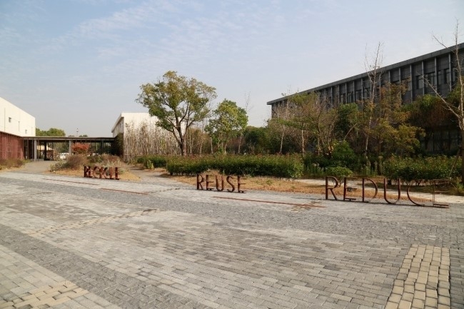 同学们首先来到生活垃圾科普展示馆,展示馆前方的广场上立着“3R原则”,分别是RECYCLE(再循环)、REUSE(再利用)和REDUSE(减量化),这正是人类社会未来的发展方向,不是建立在更多地消耗资源,而是更加节约、回收和再利用资源的基础上。
