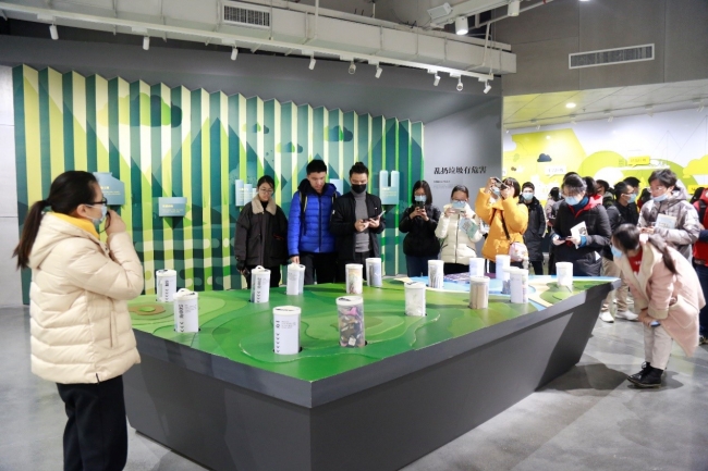 第二展厅展示了生活中各种场景可能产生的垃圾及其分类以及各国不同的垃圾分类处置回收措施。第三展厅展示了不同类型垃圾的处理方式。