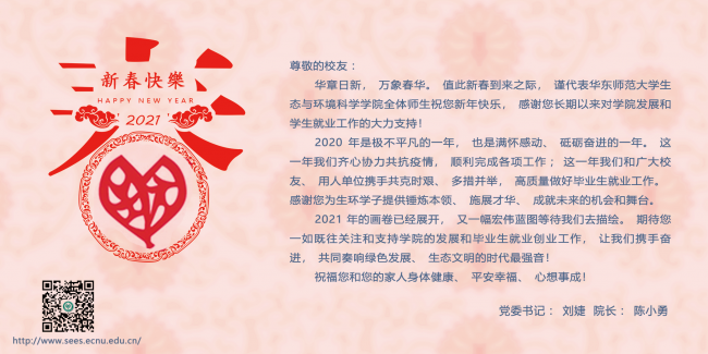 2021年的画卷已经展开,又一幅宏伟蓝图等待我们去描绘。期待您一如既往关注和支持学院的发展和毕业生就业创业工作,让我们携手奋进,共同奏响绿色发展、生态文明的时代最强音!
