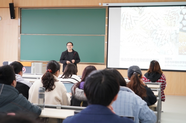 讲座结束后,刘权兴老师和路葵老师与同学们进行了更深入的交流。刘老师讲到,自己在本科生及研究生学习的专业、学科对自己现在从事的生态学研究工作起到了很大的帮助。刘老师本科期间经常听不同学科的各类讲座,收益良多,刘老师鼓励同学们应该多听报告,多与有不同学科背景的老师进行交流,提高对不同观点的吸纳能力。路老师希望同学们多多利用好学校和学院丰富的学习资源,重视数学、化学等基础课程的学习,在将来的科研工作中常常需要多学科的交叉融合和扎实的基础功底。