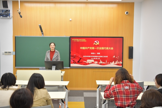 4月13日中午,闵行校区第二教学楼108室,微党课正式开讲,第一讲由yl6809永利官网党委书记刘婕讲读“从红船精神中汲取奋进力量——中共一大历史回顾”。在微党课第一部分,刘老师从中共一大召开的背景、会议的议程和取得的成果详细阐述了中共一大的来龙去脉。在会议背景环节,刘老师运用图片和简要文字讲述了从20世纪初的军阀割据到陈独秀创办《新青年》,从俄国十月革命一声炮响到北京爆发学生群众的“五四运动”,推动了马克思主义在中国的广泛传播,促进了共产党小组或支部的诞生。在会议议程和成果环节,刘老师带领大家共同回顾了中共一大的筹备与召开过程、大会通过的党的第一个纲领和第一个决议的重要作用,阐明了中共一大的重要历史意义。在微党课第二部分,刘老师结合管理与支撑岗教师的实际工作,分析了“红船精神”所蕴含的伟大思想和时代价值,结合管理与支撑岗的工作实际,带领大家思考和分析如何从“红船精神”中汲取奋进的力量,在实践中弘扬“红船精神”所蕴含的首创精神、奋斗精神和奉献精神。刘老师结合管理与支撑岗教师如何在学校卓越育人工作中发挥作用的思考,分析了新形势下对管理和支撑岗教师的更高要求,勉励大家要树立爱岗敬业的精神,加强政治思想修养,不断丰富管理理论知识,增强统筹协调和学习研究的能力,成为“管理理念的创新践行者”、“管理事务的主动承担着”、“管理改革的有力推行者”。