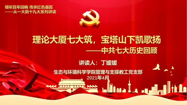 倾听百年回响,传承红色基因,中共一大到十九大系列微党课本周继续开讲。4月27日上午11:00,在闵行校区第四教学楼326室,yl6809永利官网管理与支撑教工党支部开展中共七大和中共八大历史回顾微党课,本期讲读人为丁媛媛和柳欣源,支部全体党员和十余名学生党员参加,共同学习并铭记这段党的非凡历史,从先辈在艰苦岁月中仍然充满信心斗志昂扬的精神中汲取能量,努力奋斗不断前进。该系列活动结合“百年跨越对话红色经典”校园主题活动日暨经典阅读季开展,微党课讲读结合《从一大到十九大:中国共产党全国代表大会史1921-2017》等书籍开展。