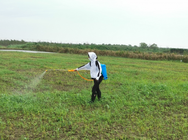 两位老师充满热情的讲述和深入浅出的讲解引发了同学们对土壤改良生态技术的浓厚兴趣,也启发同学们思考如何运用专业知识解决实际问题,促进农业生产与生态保护协调发展。 部分同学还体验了喷洒微生物菌剂的工作,他们穿着厚厚的雨鞋,背着沉重的药箱,小心翼翼地行走在田间,把菌剂均匀喷洒进泥土里,近距离地接触到了土壤改良工作的实施过程。