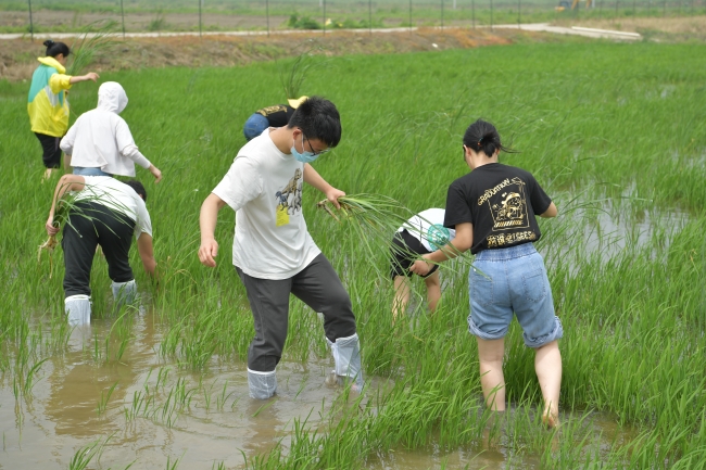 周泓宇(20级化学专业本科生 ):“刚刚看到这片田地的时候,一眼望去我甚至都没有能够将杂草和稻禾分开。但最后,在老师的经验分享与指导下,这片广阔的田地还是被我们用踏实的足迹、辛勤的汗水所丈量。这对于平日里四体不勤、五谷不分的我来说,何尝不是一份收获与满足。同时,我也衷心地希望学校的试验田能够取得科研成果与农业产量的双丰收!”