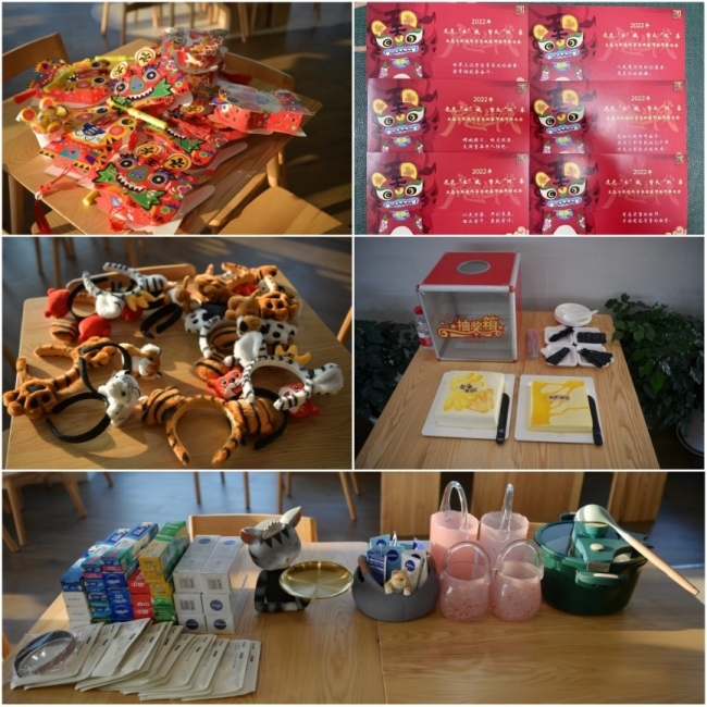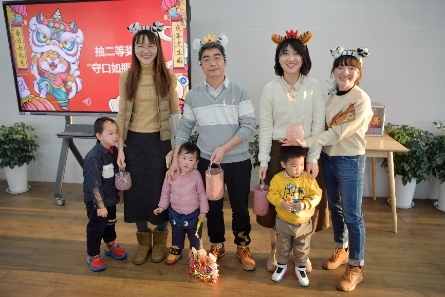 为营造喜庆的节日氛围、活跃现场气氛,联欢会还精心设计了抽奖与小游戏环节。奖项分为“珠圆玉润”奖(润肤乳)、“守口如瓶”奖(花瓶)、“海纳百川”奖(卡通收纳篮)、“国泰民安”奖(压力锅)等。活动兑奖券也颇有巧思,兑奖券是印制了习近平总书记经典语录的新年卡片,进场的老师人手一张,通过“对词”的方式进行抽奖,达到了“玩中学,学中乐”的效果。小游戏环节设计了“歌曲抢答”、“看数字、猜成语”、“华师生环知多少”,老师们和“环二代”们开动脑筋,踊跃参与,积极答题,玩得不亦乐乎。游戏抽奖环节结束之后,饺子皮和馅儿也准备好,大人小孩儿齐上阵,不一会儿的功夫,大家在欢声笑语间各式各样、饱满的芹菜肉馅和白菜肉馅饺子在大家灵巧的手中一一成型。