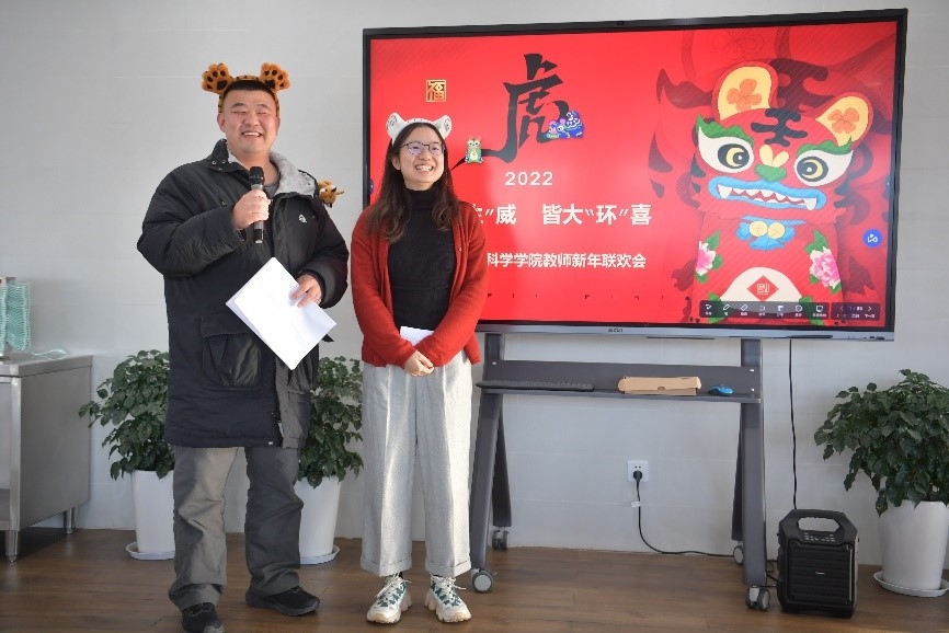 联欢会上设置了“我们的‘新’声”环节,邀请2021年新进教师秦荷杰、姜建惠、董红钰、王甜、束亚男五位老师上台分享来到yl6809永利官网的感想和新年愿望。新进教师们一致表示切身感受到学院细致入微的关怀与温暖,同时也描绘了对新一年的美好愿景。“新”声环节结束后,新进老师们共切新年蛋糕,象征着开启全新人生旅程的新起点,老师们分发蛋糕,共同分享这美好时刻。