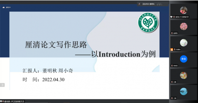 董明秋同学分享《厘清文章写作思路,以introduction为例》