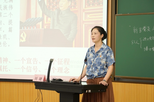 在新生党员教育第一部分,学院党委书记刘婕以“弘扬伟大建党精神,谱写新时代青春华章”为主题为2022级新生党员上第一堂党课。刘书记结合习近平总书记“七一”重要讲话精神中的“八个一”——“一个主题、一个精神、一个宣告、一个征程、一个号召、一个嘱托、一个信号、一个理念”,为新生党员送出开学寄语。刘婕老师谈到,伟大建党精神是党的精神之源,研究生党员应坚定理想信念,践行初心使命,汲取革命传统滋养,传承弘扬伟大建党精神。随后刘婕书记谈到新时代研究生党员的使命,结合疫情时期下的中国青年榜样事迹,激励研究生党员要积极承担责任,顺时而为,因时而变,力争做到“四个表率”。最后,刘婕老师还对学院党委在“党建+育人+服务”方面的特色工作进行了简要介绍。